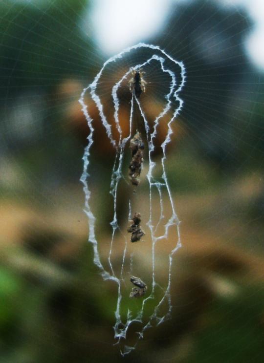 Sepertinya fungsi dari pola ekstra ini bisa bermacam-macam. Laba-laba membangun pola ini sendiri berkali-kali mungkin sampai sepuluh kali. Beberapa diantaranya membuat pola ini tidak berasal dari jaringnya sendiri melainkan dari sisa-sisa apa saja termasuk dari bekas telurnya sendiri atau apa saja yang ada di dekat jaringnya.